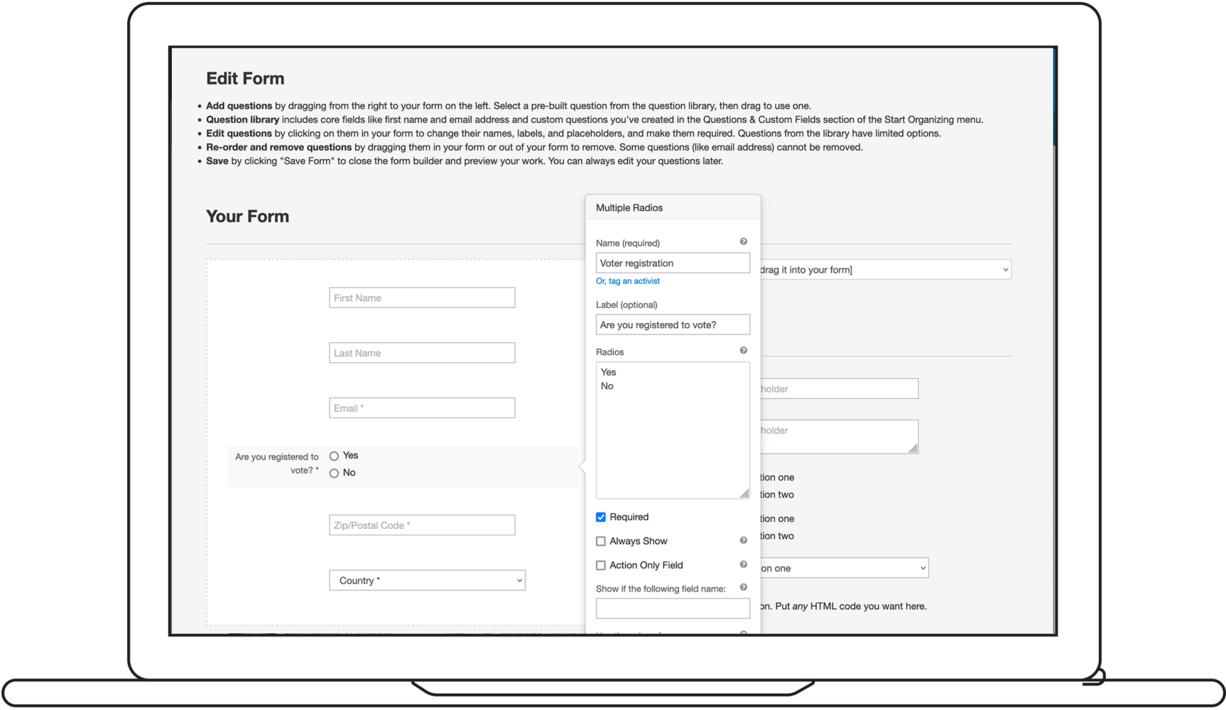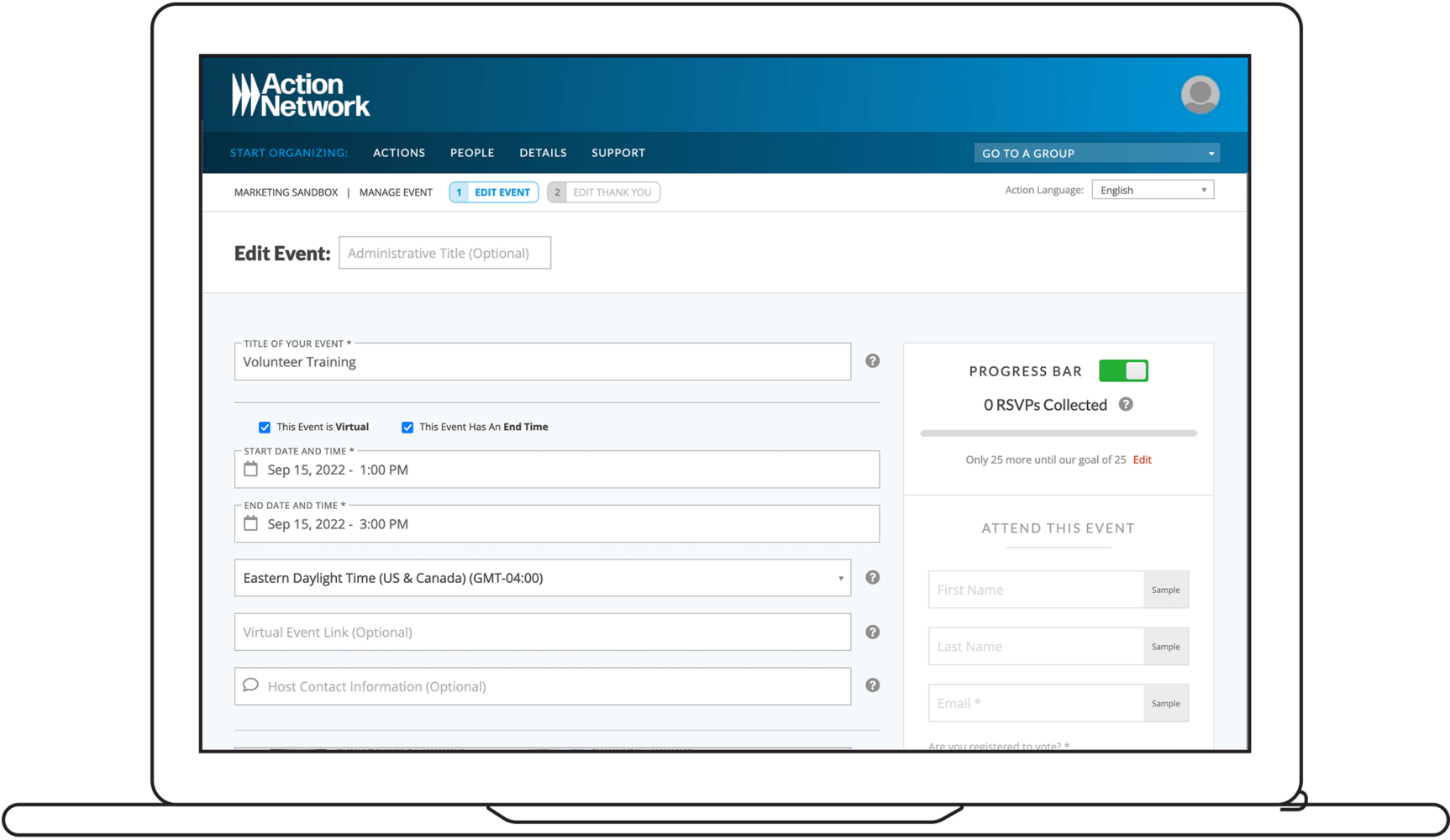 Customizable event pages you can set up in minutes for rapid response or for powering your long-term organizing strategy.