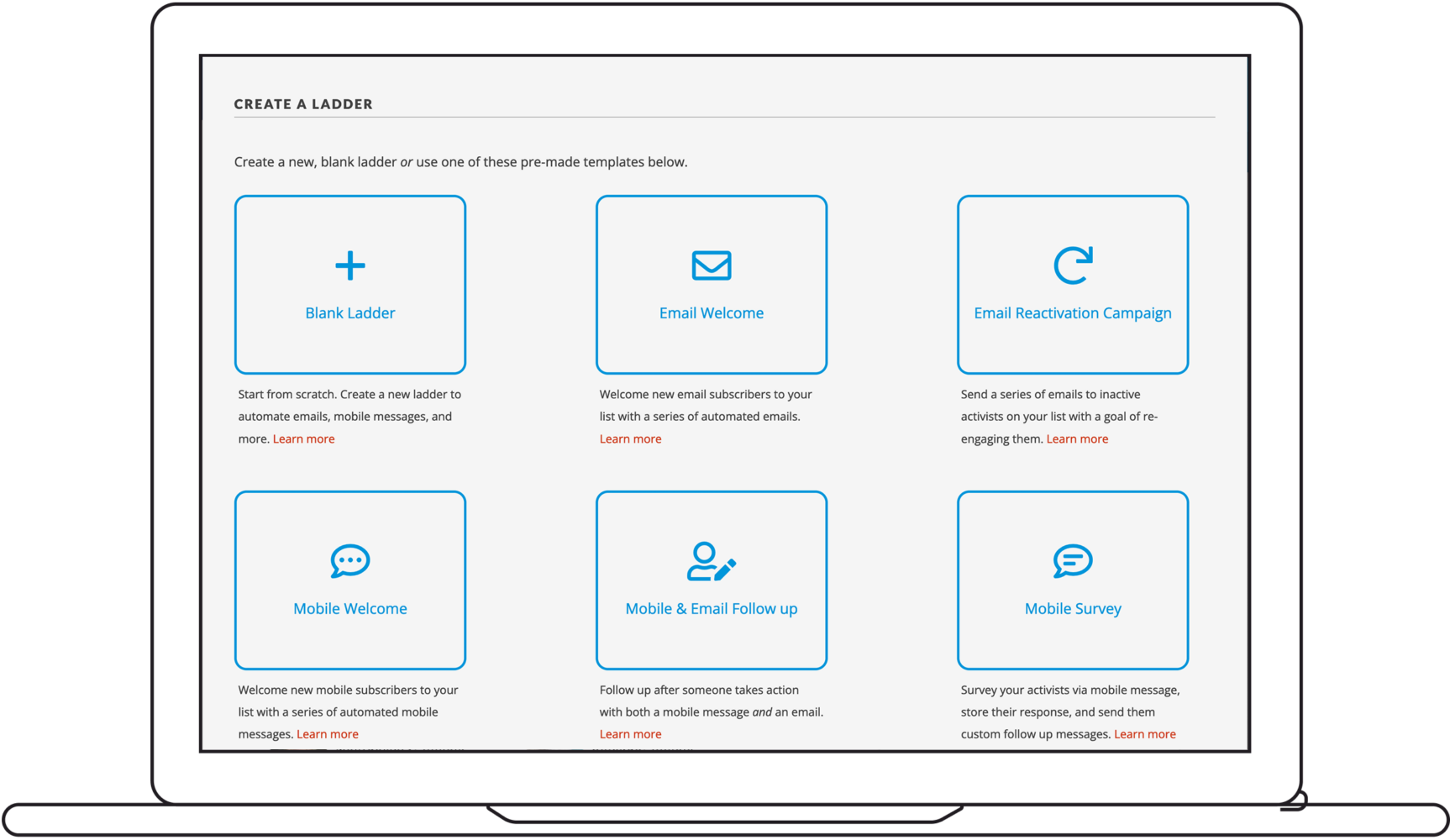 Set up email or mobile message experiences to welcome supporters, collect information, and more.