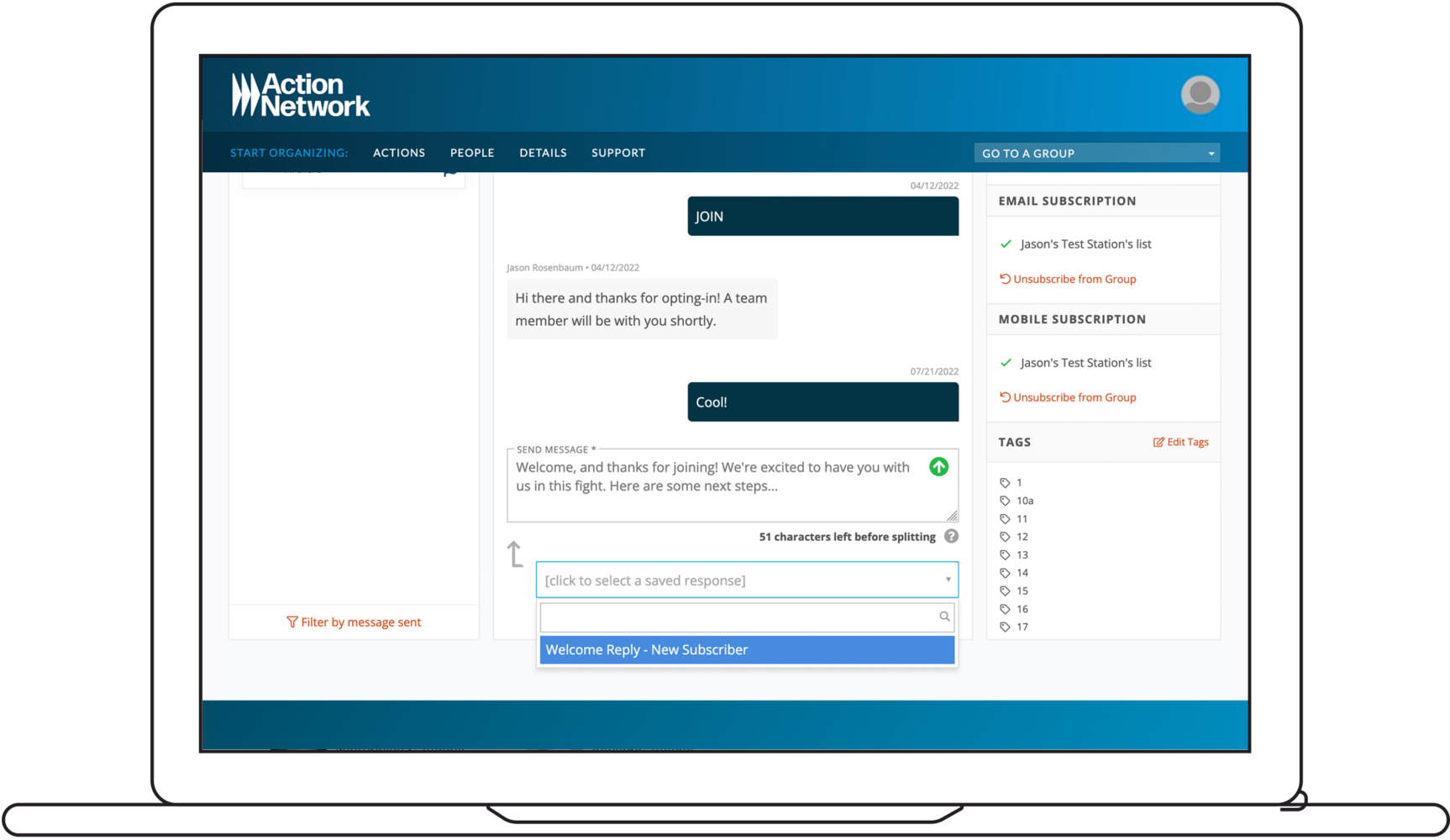 Design sophisticated automated campaign journeys for mobile messages and emails that kick in when activists subscribe, take action, or text in a keyword.